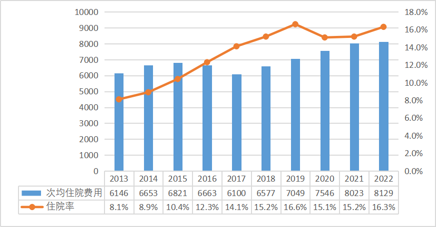 3.待遇享受。2022年,参加居民医保人员享受待遇21.57亿人次,比上年增长3.7%。其中:普通门急诊17亿人次,比上年增长1%;门诊慢特病2.97亿人次,比上年增长21.7%;住院1.6亿人次,比上年增长4.2%。次均住院费用8129元,比上年增长1.3%,其中在三级、二级、一级及以下医疗机构(含未定级)的次均住院费用分别为13898元、6610元、3139元。居民医保参保人员住院率为16.3%,比上年提高1.1个百分点;次均住院床日9.2天,比上年减少0.2天。